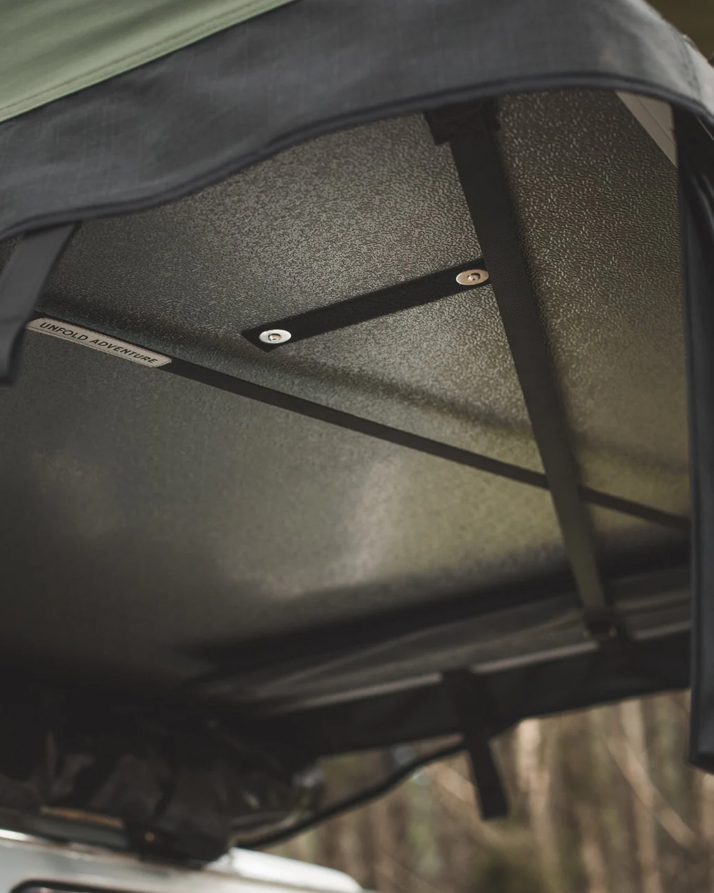 – Larger hinges than other generic rooftop tents available so that bedding and pillows can be tucked away permanently in the tent while closed and travelling.