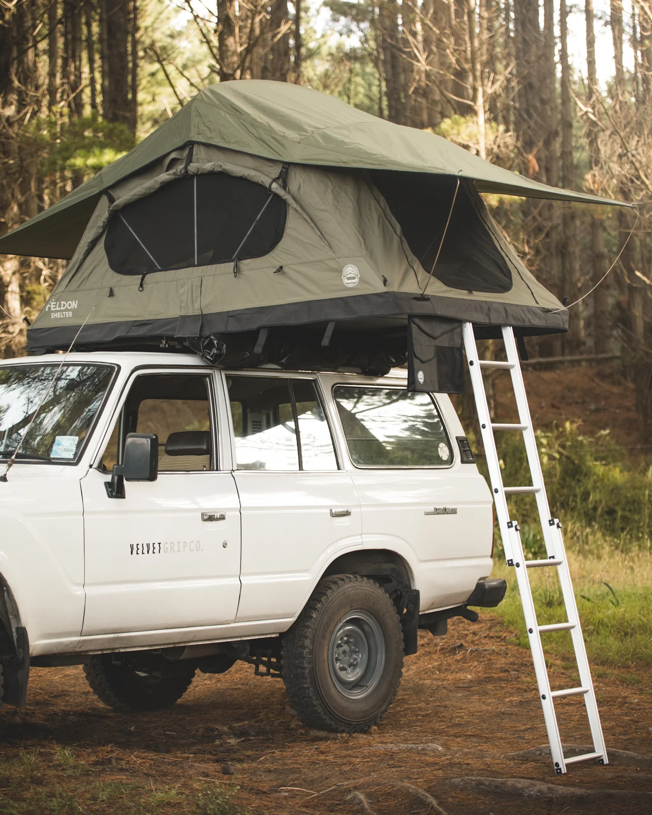 Feldon Shelter’s very own built in ErgoCell queen sized mattress comfortably fits two people with enough room to stretch out. Designed to sleep even the tallest adventurer comfortably. Featuring a waterproof underside, sides and anti-soak top corners. There’s nothing like a soft and flat bed to lay on after a long day behind the wheel. You can kiss goodbye those restless nights spent sleeping on rocks and roots.