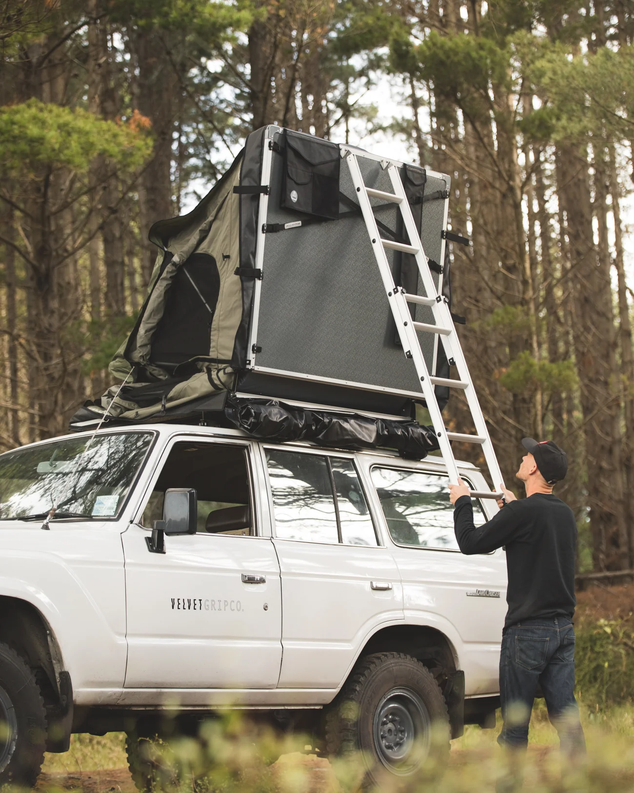 The most premium roof top tent available is chocked full of carefully thought out features. Ample storage is taken care of with an external shoe/gadget pocket, multi overhead storage straps and handy internal storage pockets. A retractable light-weight ladder, quick release hand attachments and plenty of ventilation take the pain out of camping to create effortless adventures.